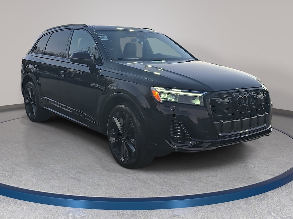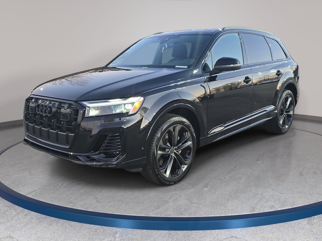 Mythos Black Metallic 2026 Audi Q7 55 Premium Plus quattro quattro 8-Speed Automatic with Tiptronic 3.0L TFSI 4-Way Power Lumbar For Passenger Seat, 7-Pin Adapter, 7700 lbs Towing Capacity, Adaptive Air Suspension, Anthracite Gray Audi Rings, Audi Beam Rings, Bang & Olufsen Premium Sound System with 3D Sound, Black Door Blades, Black Exterior Trim, Black Grille, Black Optic Package, Black Roof Rails, Black Wheel Center Caps, Black Window Surrounds, Control Buttons in Gloss Black with Haptic Feedback, Dark Chrome Exhaust Tips, Dual-Pane Acoustic Glass For Side Windows, Four-Zone Automatic Climate Control, Heated Rear Seats, Heated Steering Wheel, Illuminated Door Sills, LED Interior Lighting Plus Package, Power Soft-Closing Doors, Premium Plus Package, Rear Door/Side Windows and Tailgate Sunshades, Top View Camera System with Virtual 360 View, Trailer Hitch, Ventilation For Front Seats, Wheels: 20" 5-Double-Spoke, Wheels: 21" 5-Double-Spoke-Module-Design with Matte Gray Finish. Price includes: $5000 - National Customer Credit. Exp. 04/30/2026