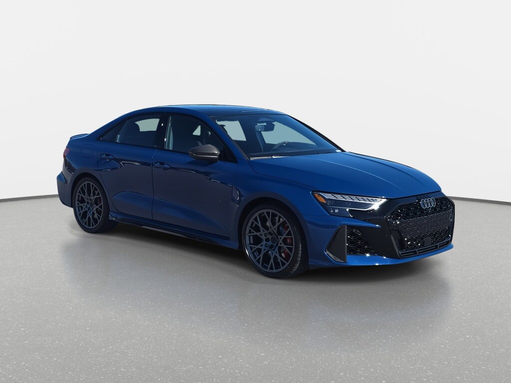 Blue 2026 Audi RS 3 2.5T quattro quattro 7-Speed 2.5L I5 ABS brakes, Active Cruise Control, Alloy wheels, Compass, Electronic Stability Control, Fine Nappa Leather Seat Trim, Front dual zone A/C, Heated door mirrors, Heated front seats, Heated Front Sport Seats, Illuminated entry, Low tire pressure warning, Navigation System, Power moonroof, Remote keyless entry, Traction control.