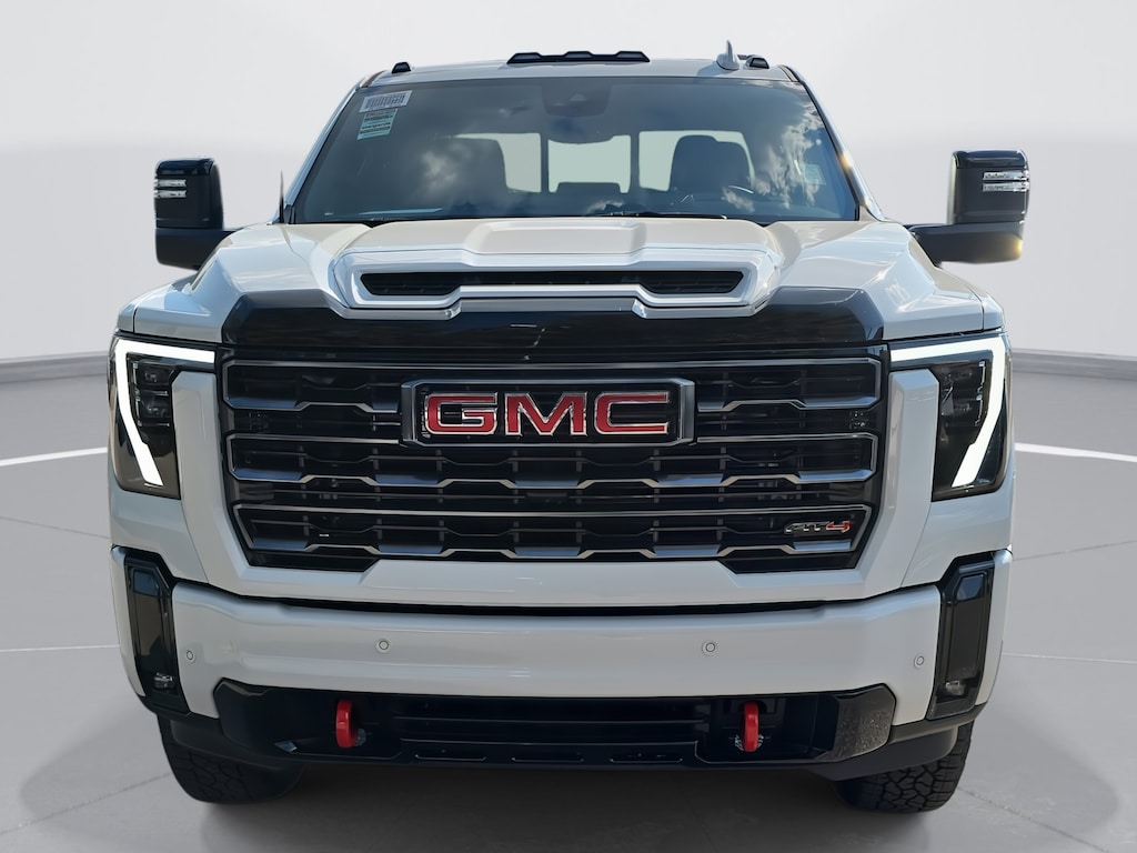 Summit White 2026 GMC Sierra 2500HD AT4 4WD 10-Speed Automatic Duramax 6.6L V8 Turbodiesel 10-Speed Automatic, 4WD, Jet Black With Kalahari Accents Leather.