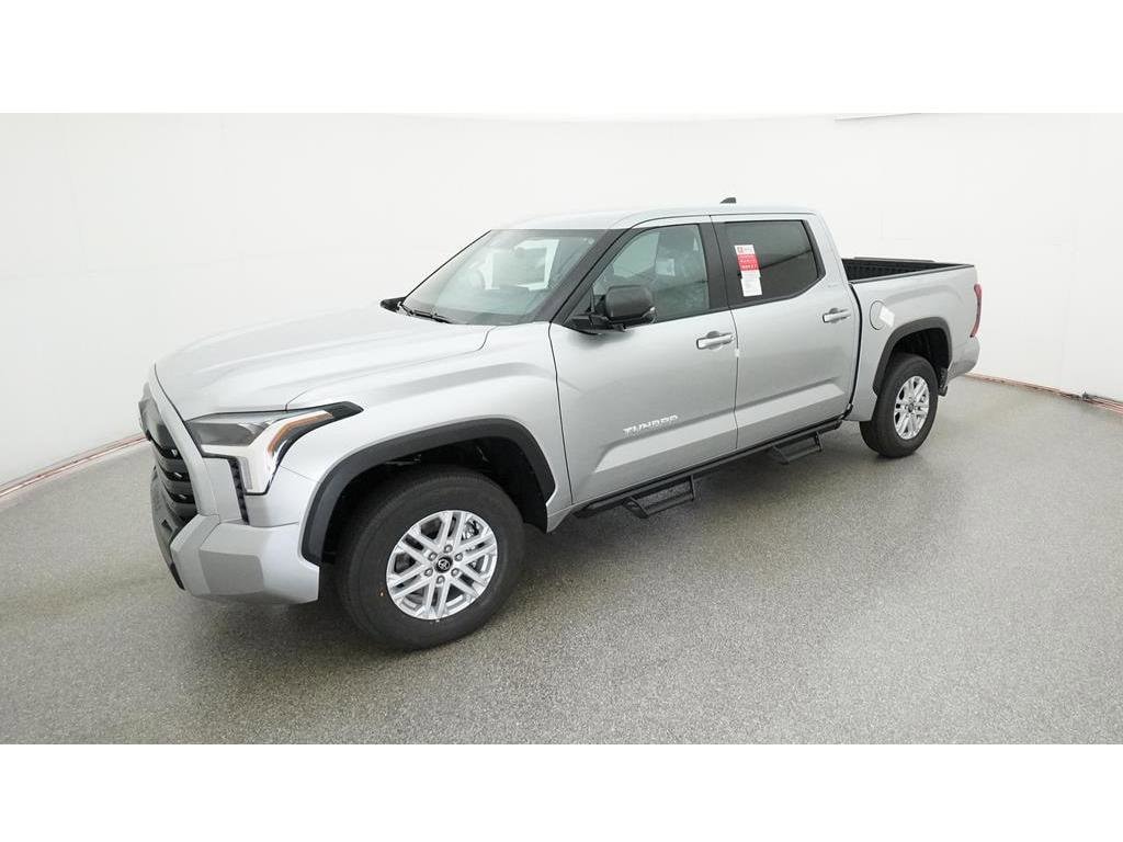 Celestial Silver Metallic 2025 Toyota Tundra SR5 4WD 10-Speed Automatic 3.4L V6 Wireless Phone Charging, SMART LED Ambient Lighting, 4WD, Black w/SofTex Seat Trim, 122L Fuel Tank, 8-Way Power-Adjustable Heated Front Seats, All Weather Floor Liners (TMS), Apple CarPlay/Android Auto, Automatic Power Tailgate with Easy Closing, Blind Spot Monitor w/Lane Change Assist, Heated Leather Steering Wheel, Parking Support Alert/Brake, Predator Drop Step (TMS), Radio: Premium Audio, Safety Connect, SofTex Seat Trim, Spray-On Bed Liner w/Storage Box (TMS), SR5 Convenience Package, SR5 Premium Package.