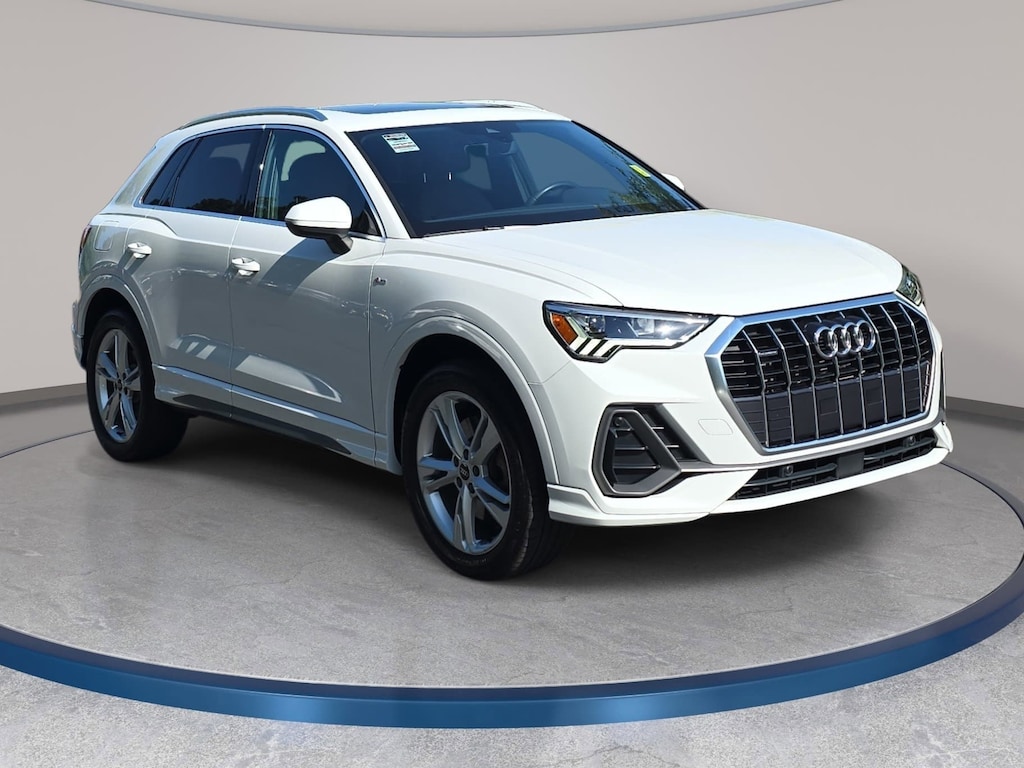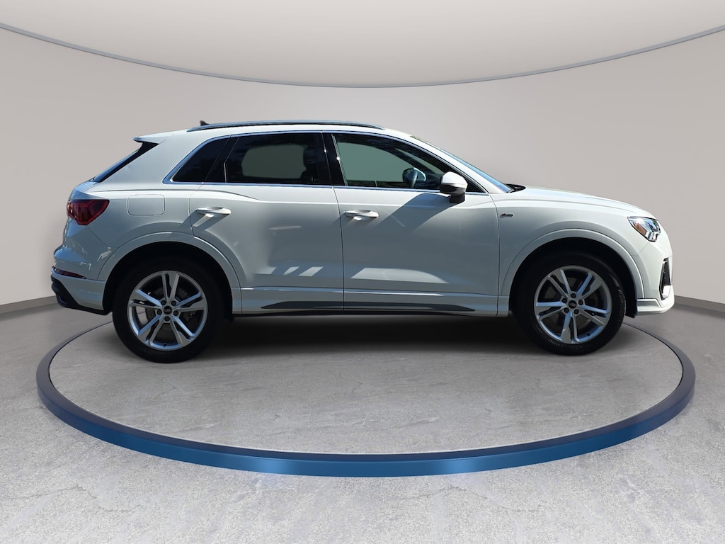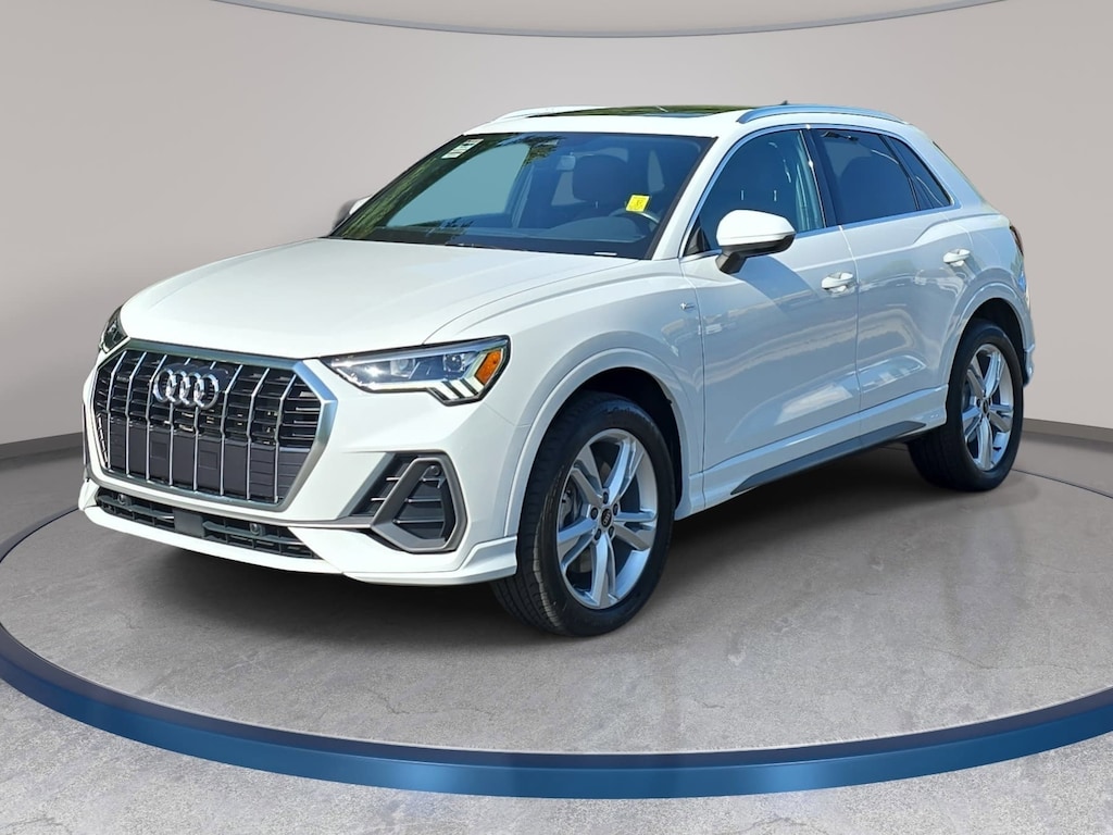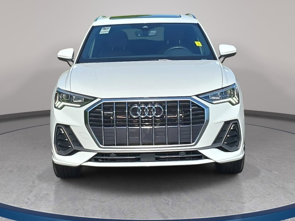 Glacier White Metallic 2024 Audi Q3 Premium S Line quattro 2.0L 4-Cylinder TFSI 10 Speakers, 3.53 Axle Ratio, 4-Wheel Disc Brakes, ABS brakes, Air Conditioning, Alarm w/Motion Sensor, Alloy wheels, AM/FM radio, Audi Advanced Key, Audi smartphone interface (Apple CarPlay/Android Auto), Auto High-beam Headlights, Auto-Dimming Power-Folding Exterior Mirrors, Auto-Dimming Rear-View Mirror, Automatic temperature control, Black Exterior Trim, Black Optic Sport Package, Black Roof Rails, Brake assist, Bumpers: body-color, Convenience Package, Delay-off headlights, Driver door bin, Driver Seat Memory, Driver vanity mirror, Dual front impact airbags, Dual front side impact airbags, Electronic Stability Control, Emergency communication system: Audi connect CARE, Exterior Parking Camera Rear, Four wheel independent suspension, Front anti-roll bar, Front Bucket Seats, Front Center Armrest, Front dual zone A/C, Front fog lights, Front reading lights, Fully automatic headlights, Garage Door Opener (HomeLink), Heated door mirrors, Heated Front Bucket Seats, Heated front seats, Illuminated entry, Knee airbag, Leather Seating Surfaces, Leather Shift Knob, Leather steering wheel, LED Interior Lighting Package, Low tire pressure warning, Occupant sensing airbag, Outside temperature display, Overhead airbag, Overhead console, Panic alarm, Passenger door bin, Passenger vanity mirror, Power door mirrors, Power driver seat, Power Liftgate, Power moonroof: Panoramic, Power passenger seat, Power steering, Power windows, Radio data system, Radio: Audi Sound System, Rain sensing wipers, Rear air conditioning, Rear anti-roll bar, Rear fog lights, Rear reading lights, Rear seat center armrest, Rear window defroster, Rear window wiper, Remote keyless entry, SiriusXM, Speed control, Speed-sensing steering, Split folding rear seat, Spoiler, Sport Front Seats, Steering wheel mounted audio controls, Tachometer, Telescoping steering wheel, Tilt steering wheel, Traction control, Trip computer, Turn signal indicator mirrors, Variably intermittent wipers, Wheels: 18" 5-V-Spoke-S Design, Wheels: 19" 5-Double-Arm Design, Wireless Phone Charging Pad.