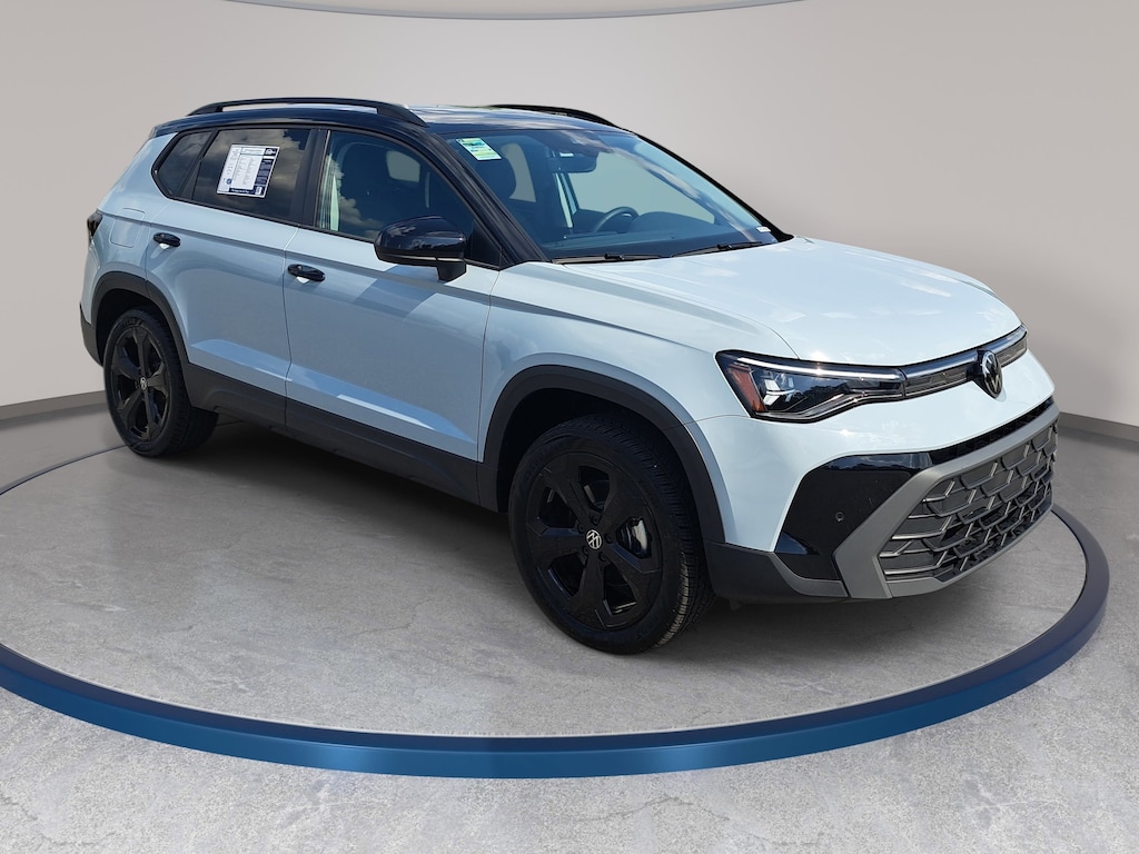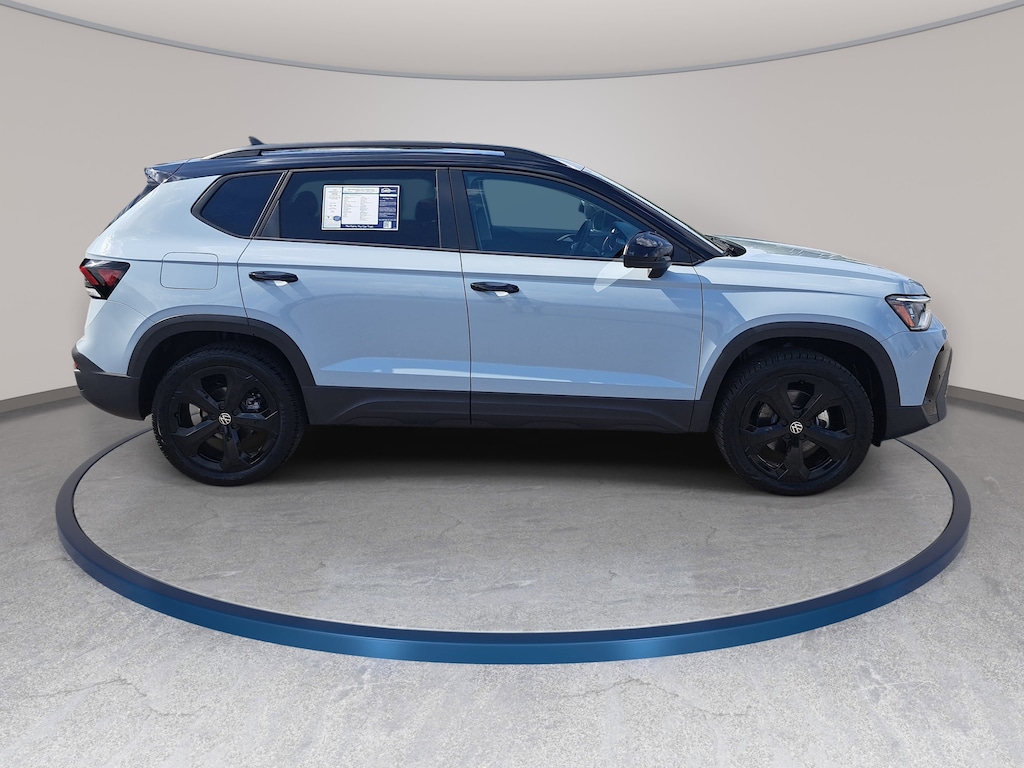 Monument Gray w/Deep Black Roof 2025 Volkswagen Taos 1.5T SE Black AWD 8-Speed Automatic with Tiptronic 1.5L I4 Turbocharged DOHC 16V LEV3-SULEV30 174hp Local Trade, Non-Smoker, Purchased Here, Serviced Here, Auto High-beam Headlights, Automatic temperature control, Brake assist, CloudTex & Cloth Seating Surfaces, Electronic Stability Control, Exterior Parking Camera Rear, Four wheel independent suspension, Front dual zone A/C, Fully automatic headlights, Heated Front Bucket Seats, Power driver seat, Power moonroof, Radio: MIB3 Composition Media AM/FM/HD, Rain sensing wipers, Rear window wiper, Remote keyless entry, Speed-sensing steering, Split folding rear seat, Steering wheel mounted audio controls, Traction control, Wheels: 19" Black Painted Alloy.